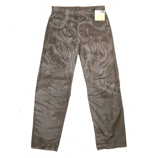 Marithe F. Girbaud brown cargo trousers with abstract print allover, sz 46 NWT 90s