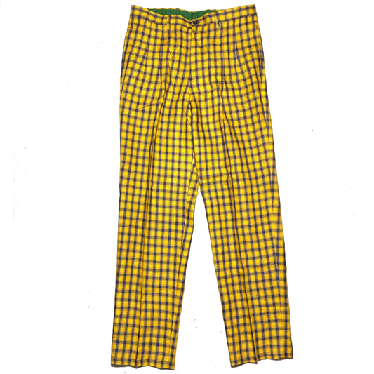 Luciano Barbera 100% Linen checkered yellow/blue trousers, elegant cut, NOs 90s