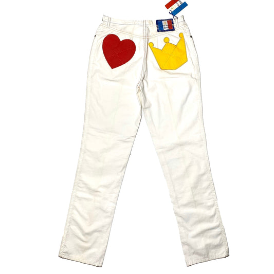 Castelbajac jeans collectible ladies trousers with Heart / Crown pockets details, new old stock w tags