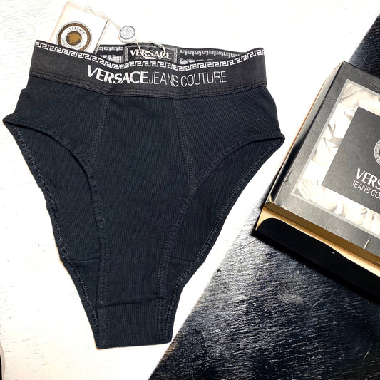 Versace Jeans Couture NOS ribbed panties with greek and signature on waistband, available in black and white