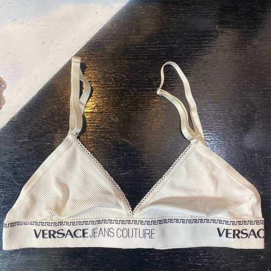 Versace Jeans Couture NOS 90s top-bra with signature bands, white new and boxed