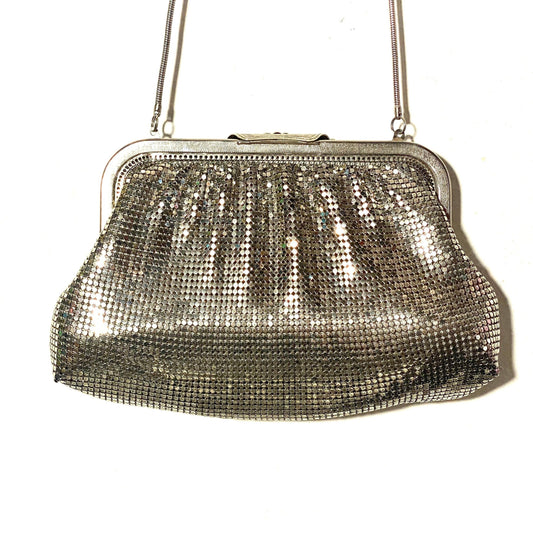 Arton 80s silver / black mesh clucth bag with jeweled closure, mint