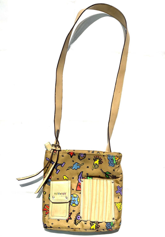 J.L.Castelbajac beige canvas-leather shoulder bag w pop-art comics print allover, great condition