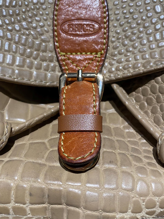 Bric’s leather backpack in beige alligator print & tan leather, 90s great condition