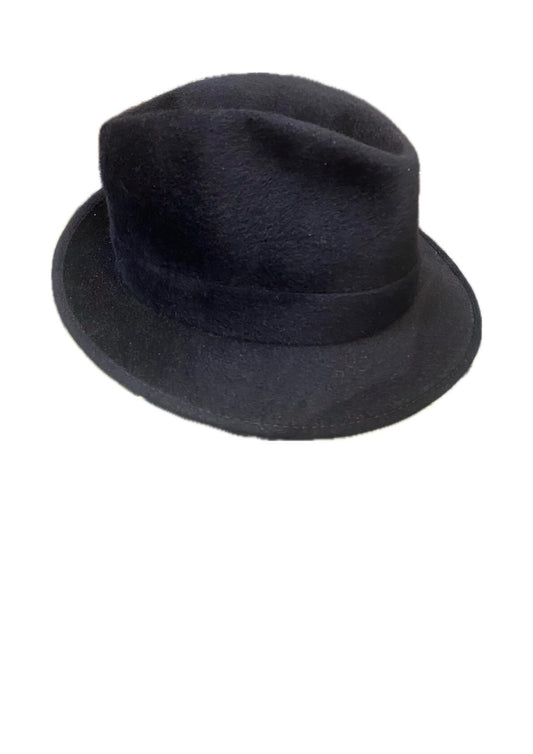 Borsalino Luxury black Velour trilby - fedora elegant hat, Italy 1970s NOS
