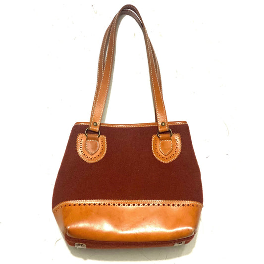 Bonfanti burgundy wool & cuir leather winter country chic bag, 80s Italy mint condition.