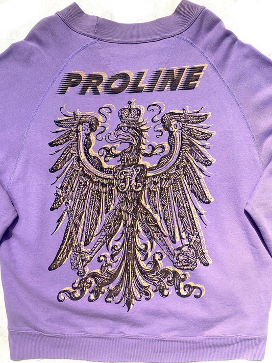 Proline JetSet felpa oversize in cotone girocollo lilla con stampa fenice serigrafica sul retro, anni '90 NoS