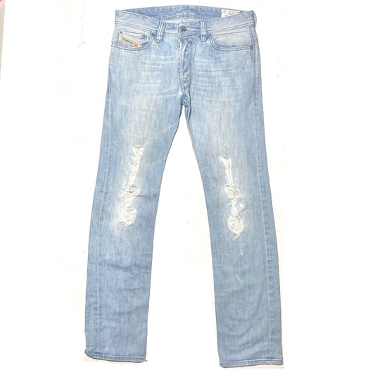 Diesel 90s distressed light blue jeans with back patches, finest quality made in Italy NOS