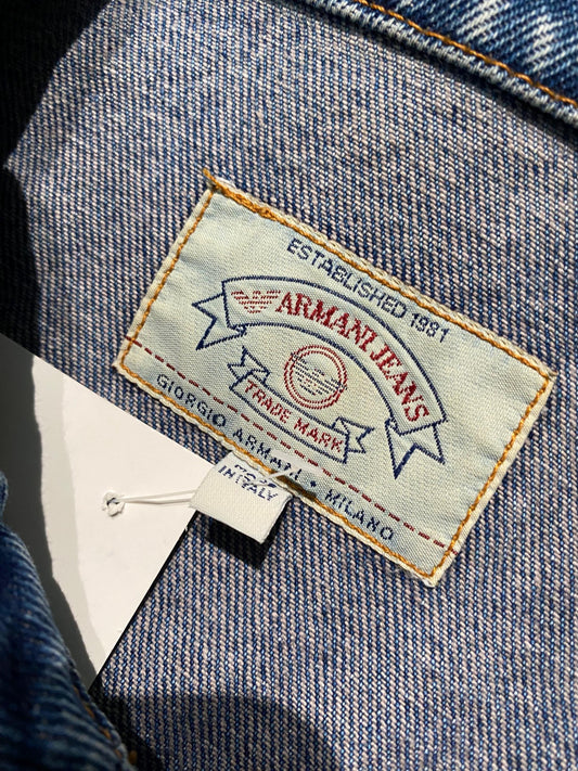 Armani Jeans classic indigo denim trucker w big embossed logo buttons, sz L, looks as new
