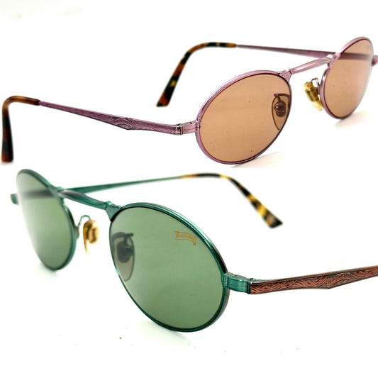 T-Look Milano Tattoo coolest small oval retro-Victorian style tortoise sunglasses w patent pierced temples, NoS 90s Italy