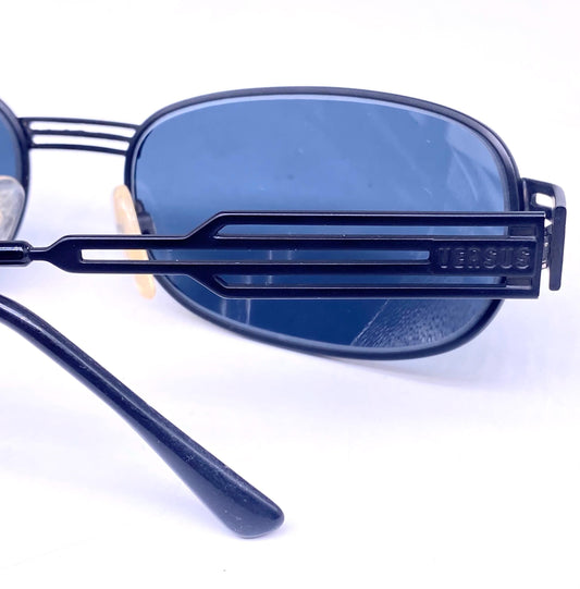 Versus Versace F04 gold/black rectangular double bridge sunglasses w carved details, NOS 90s Italy