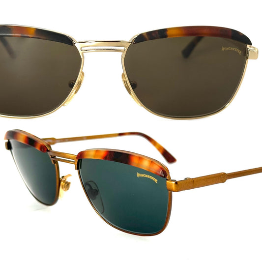 Winchester TwinFalls retro tortoise gold or brass metal sunglasses, 90s NOS hand made in Italy