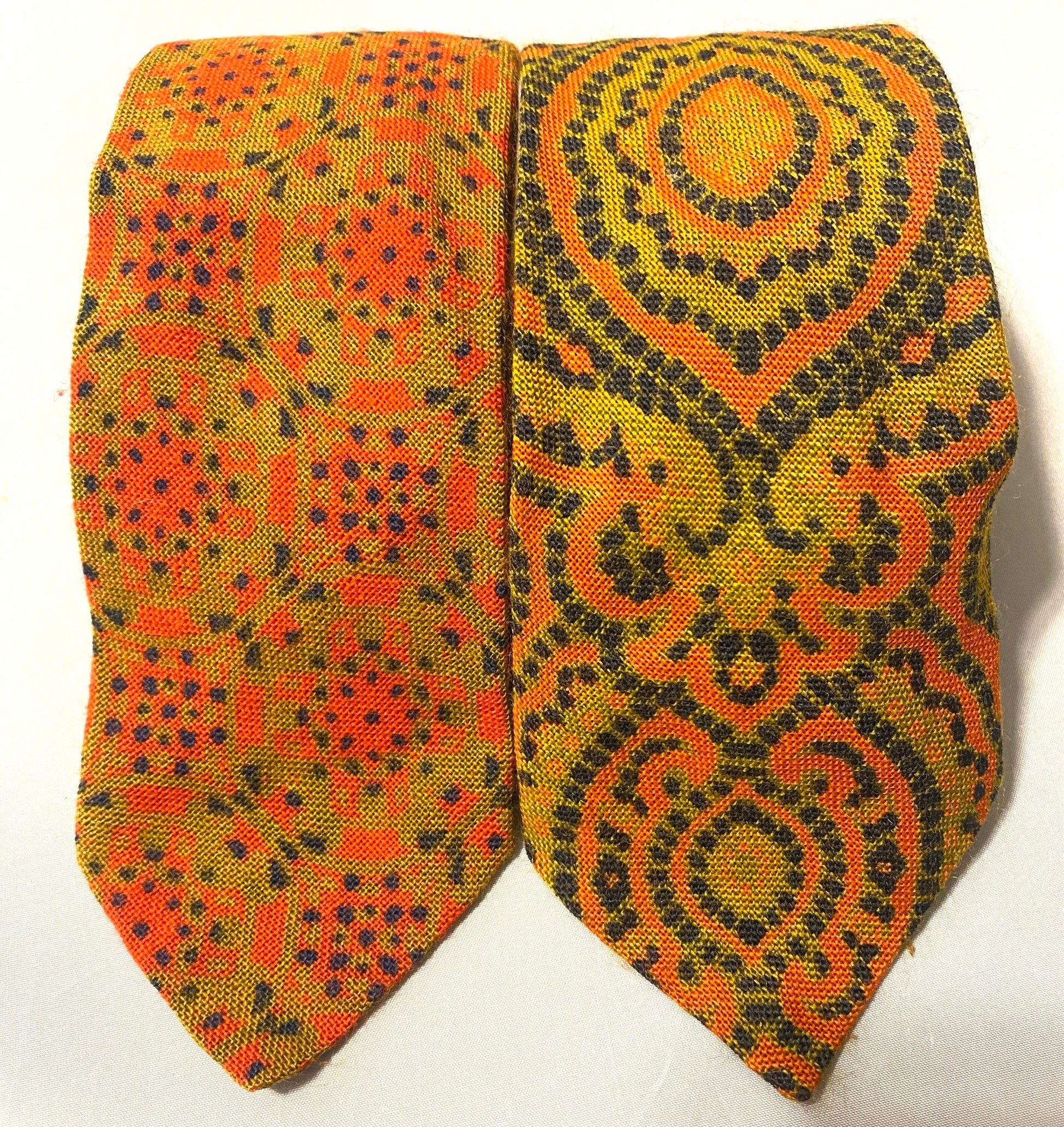 1960s psychedelic neon print ties, cutest Beatles / Pink Floyd style, mint condition