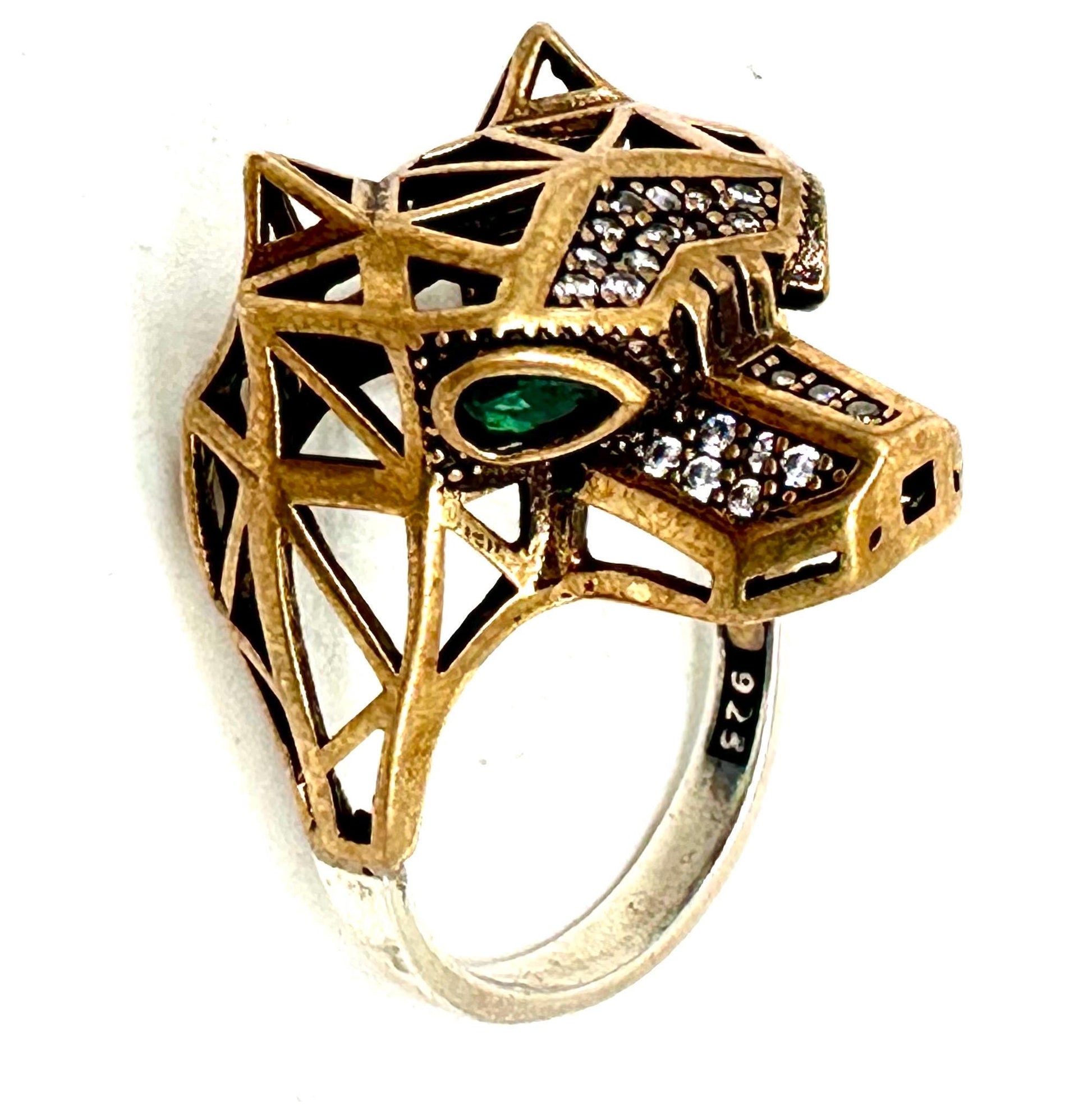 Anubi low-poly 925 silver-brass ring embellished w crystals, Beautiful and mint