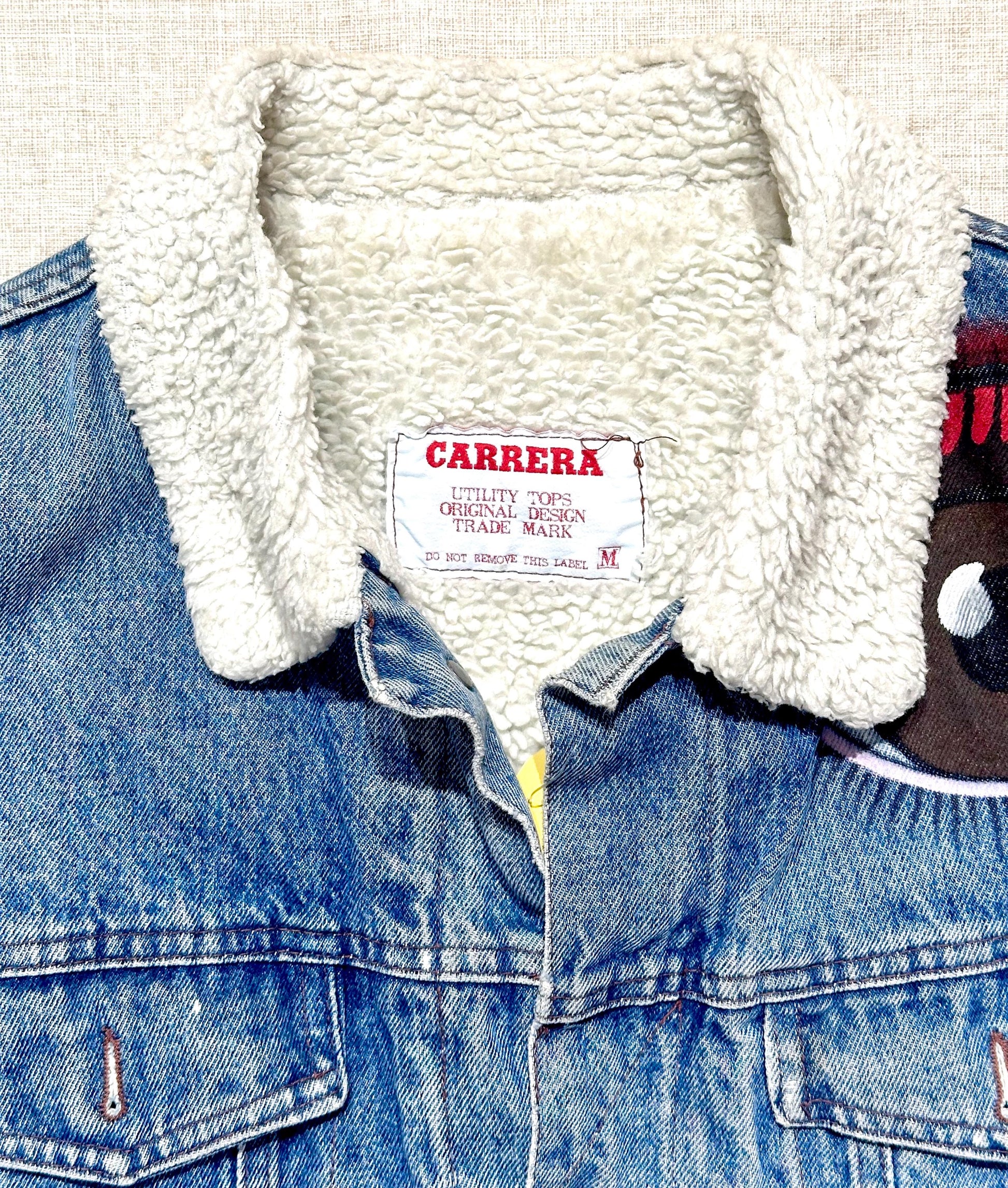 Carrera Jeans Sherpa Trucker denim indigo hand painted Eyes custom jacket.