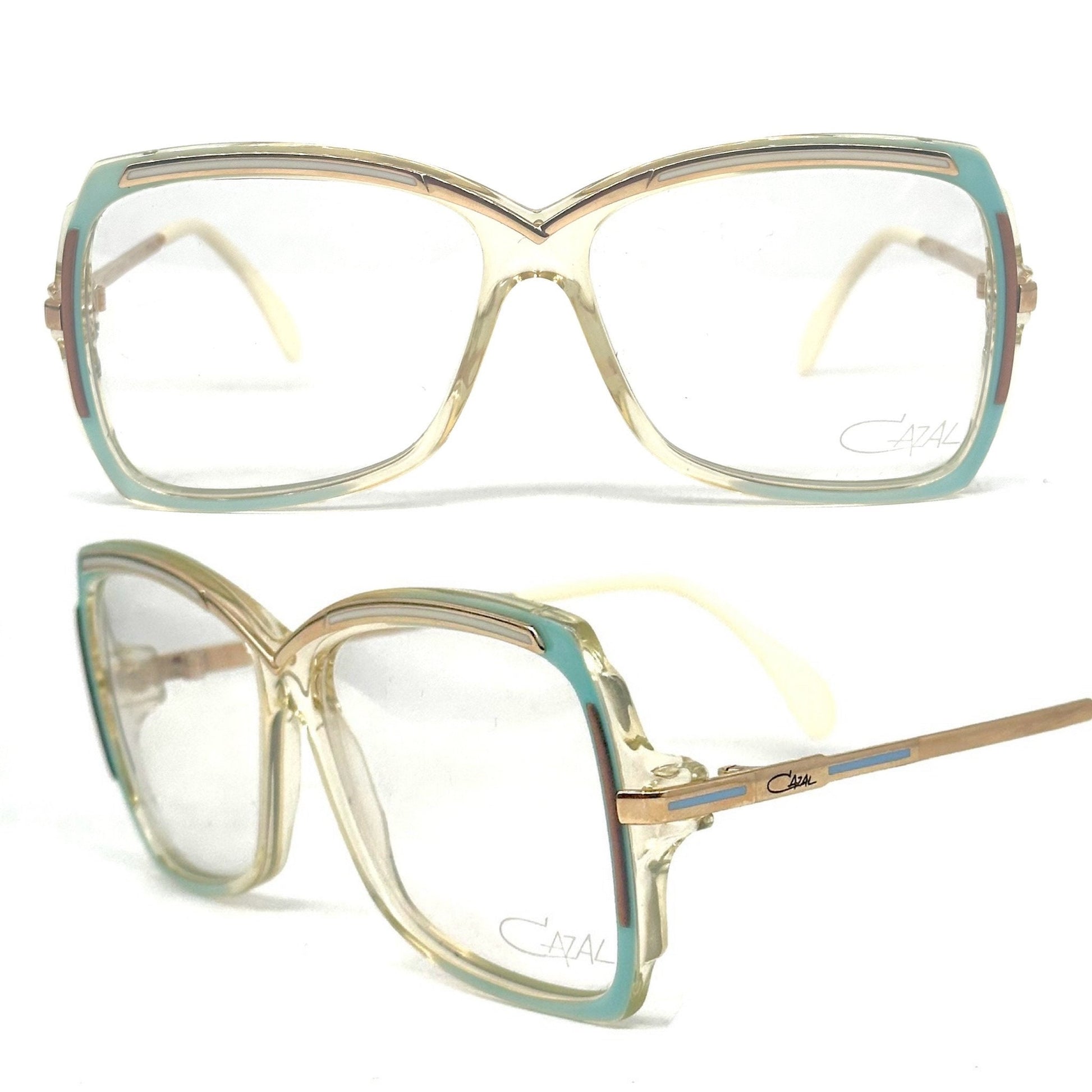 Cazal 177 avant garde square oversized eyeglasses in three color combinations, NoS 80s W Germany