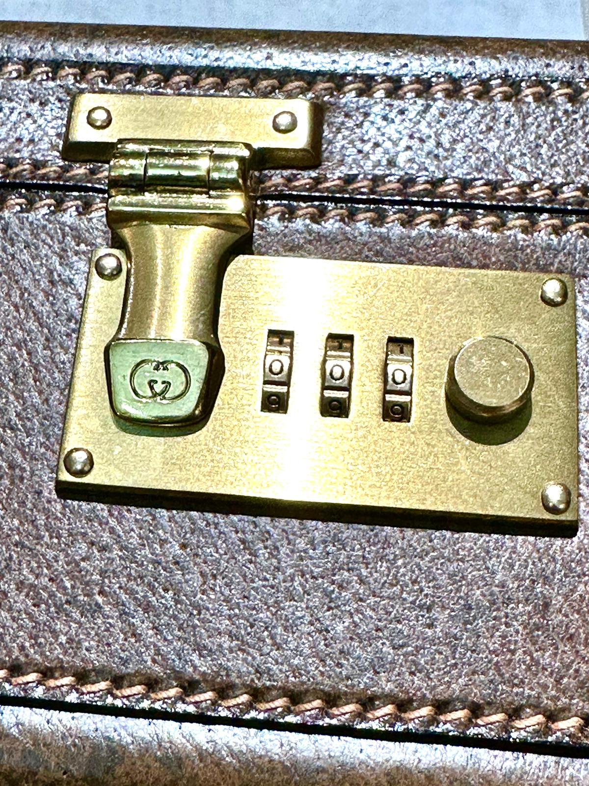 Gucci 1970s 24hrs luggage hand crafted in Italy. New old stock classy 24h trunk/ briefcase in tan pigskin leather with brass metal hardware, double locking with combination;