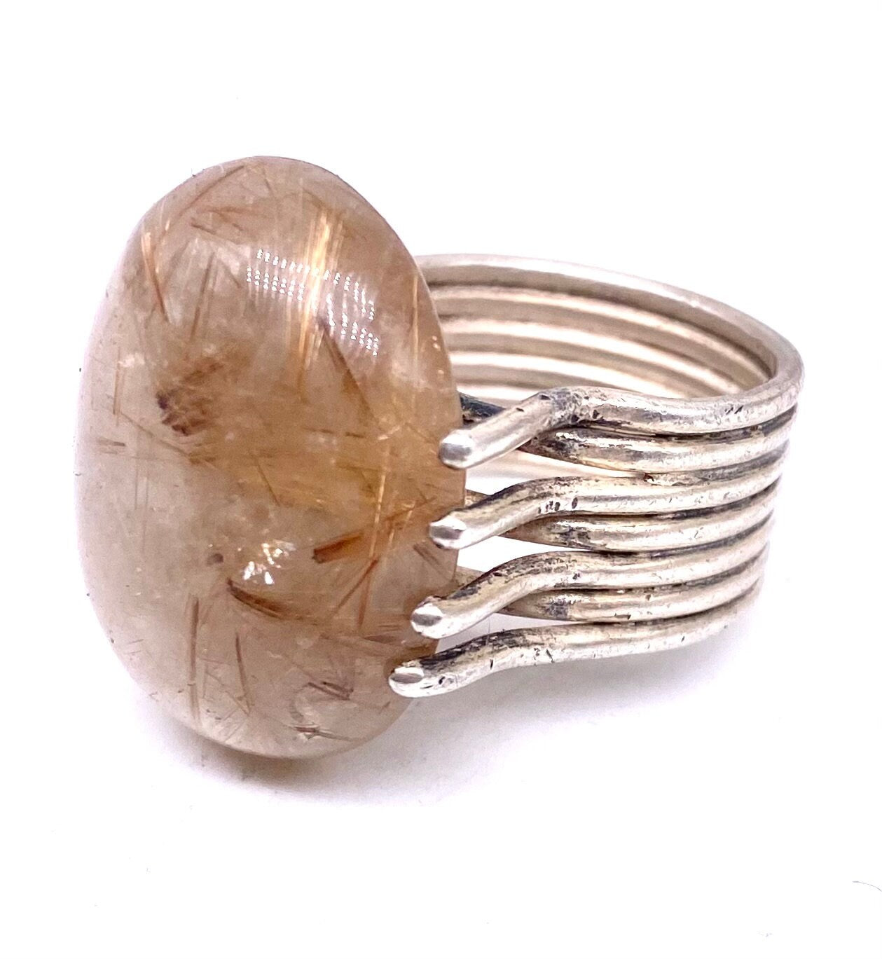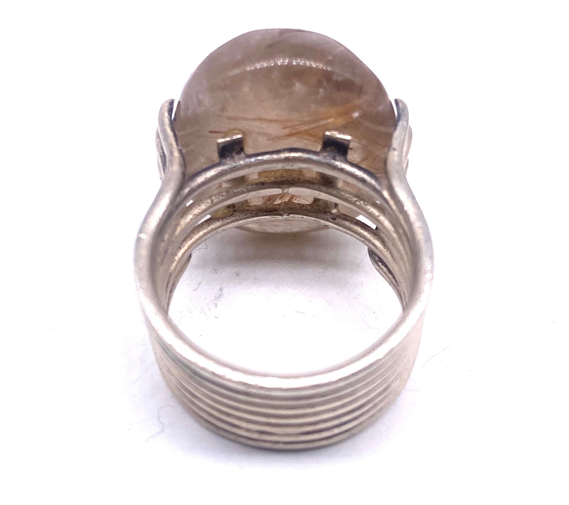 1960s Artisanal 925 Silver cable ring with big oval sunstone (Rutilated Quartz) in great condition