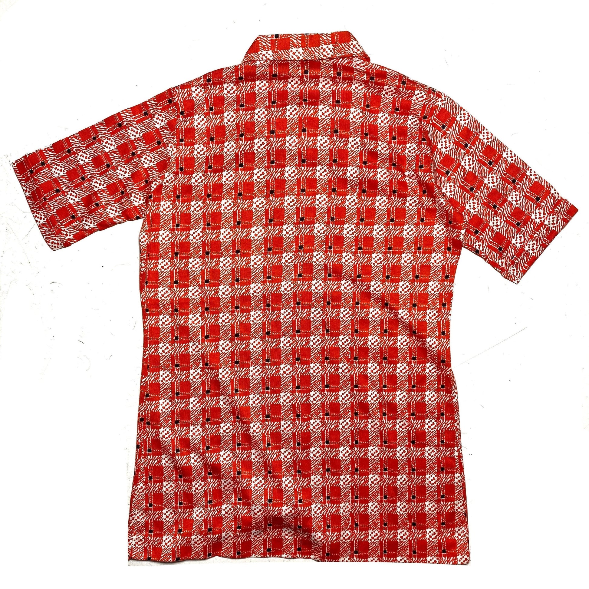 70s Mod flashy checkered red/white shirt with rounded beagle collar, new & unworn