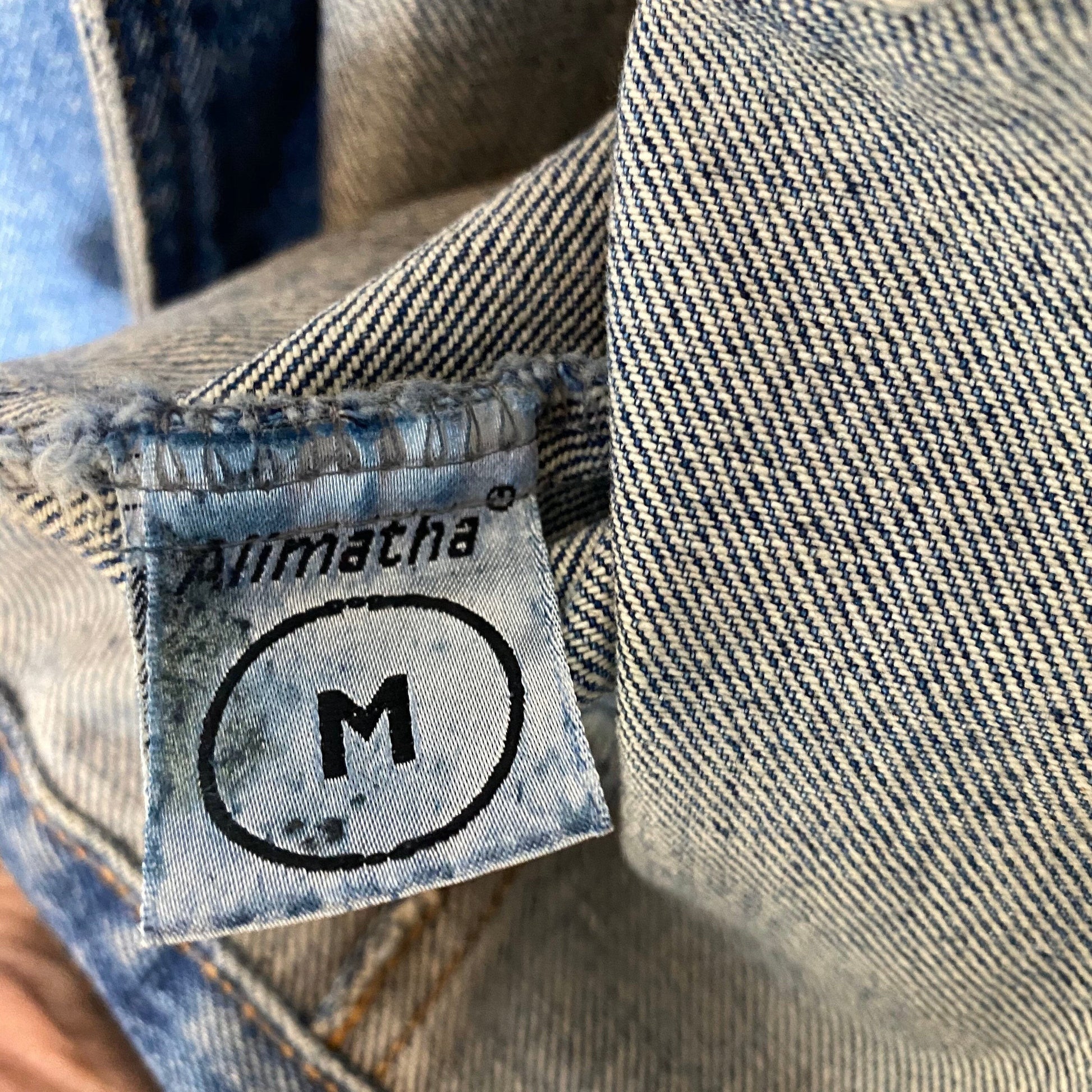 Alimatha vintage 80s ladies crop denim jacket with studded details on the pockets and collar, new and unworn from a deadstock and still with tags, in mint condition.