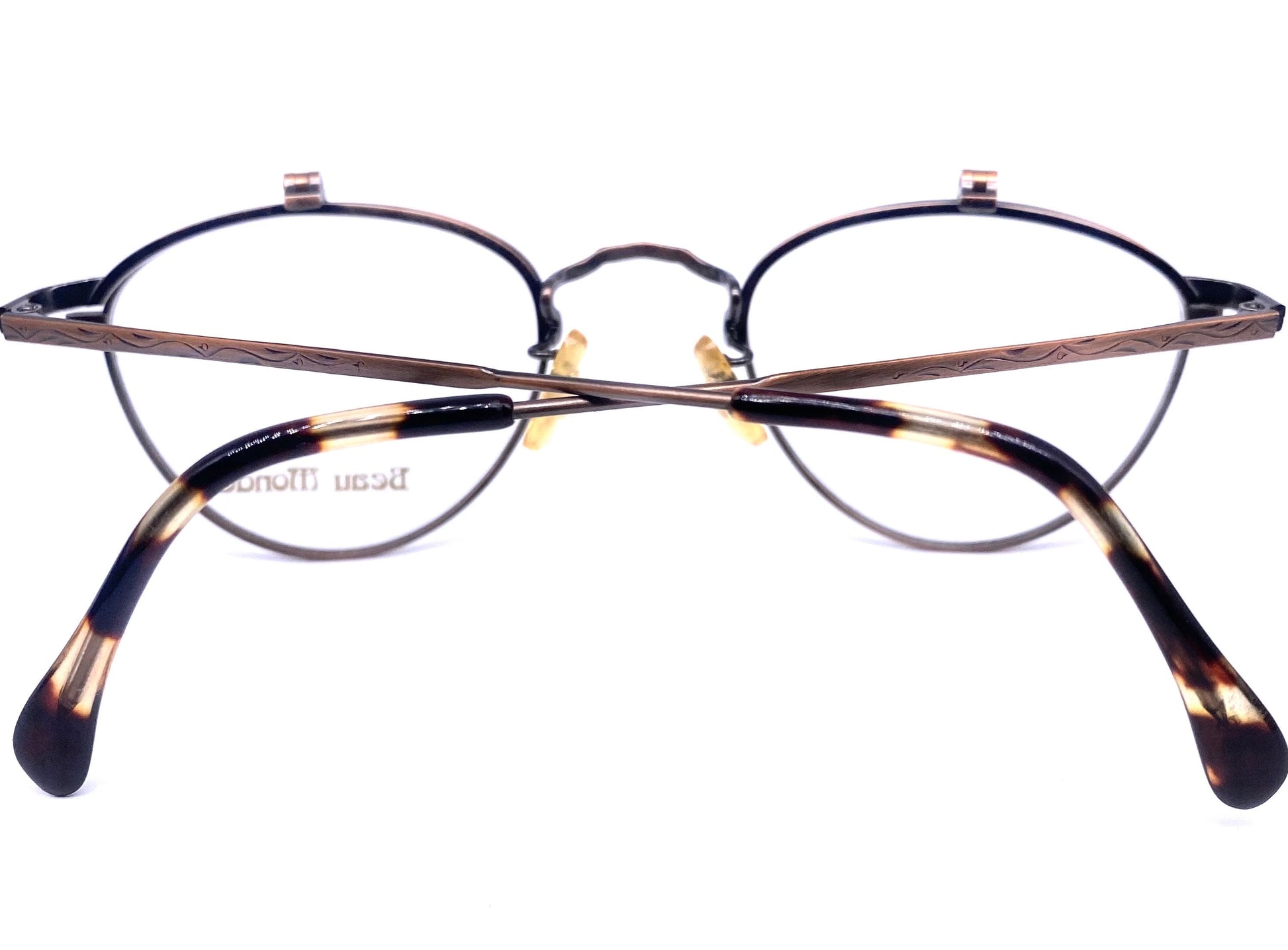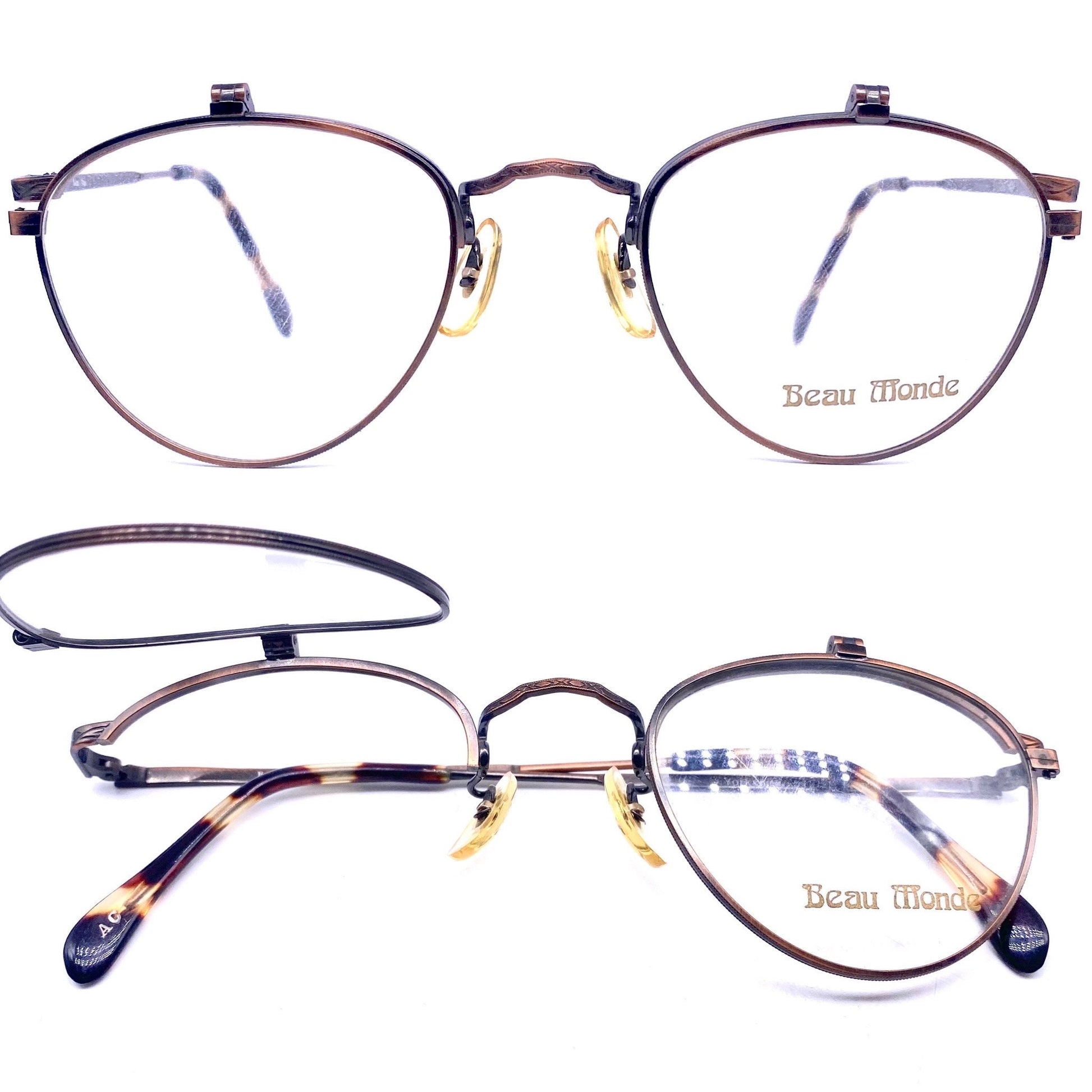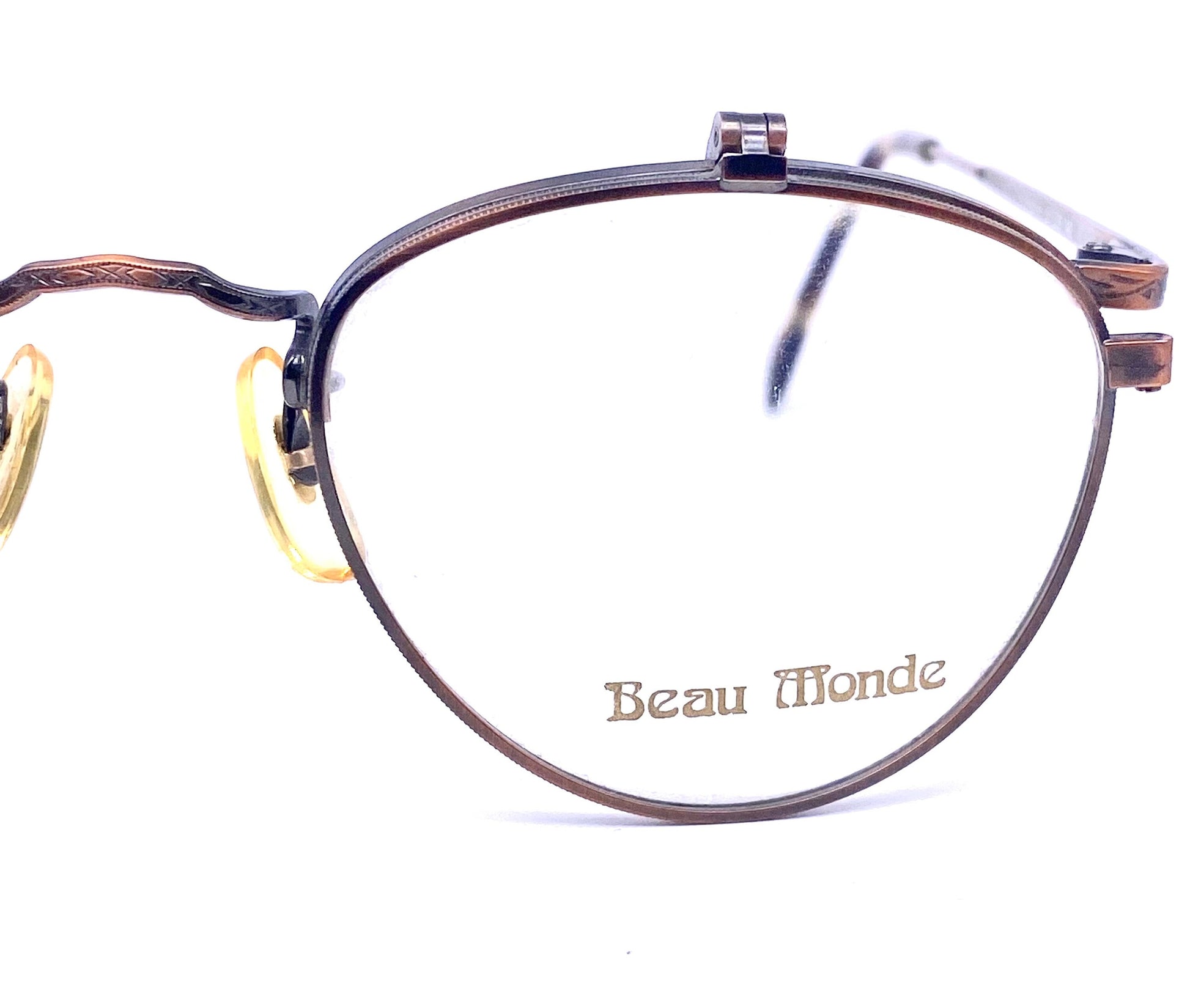 Beau Monde Yorkshire round antiqued copper flip-up eyeglasses frames, super hip piece made in Japan 80s NOS