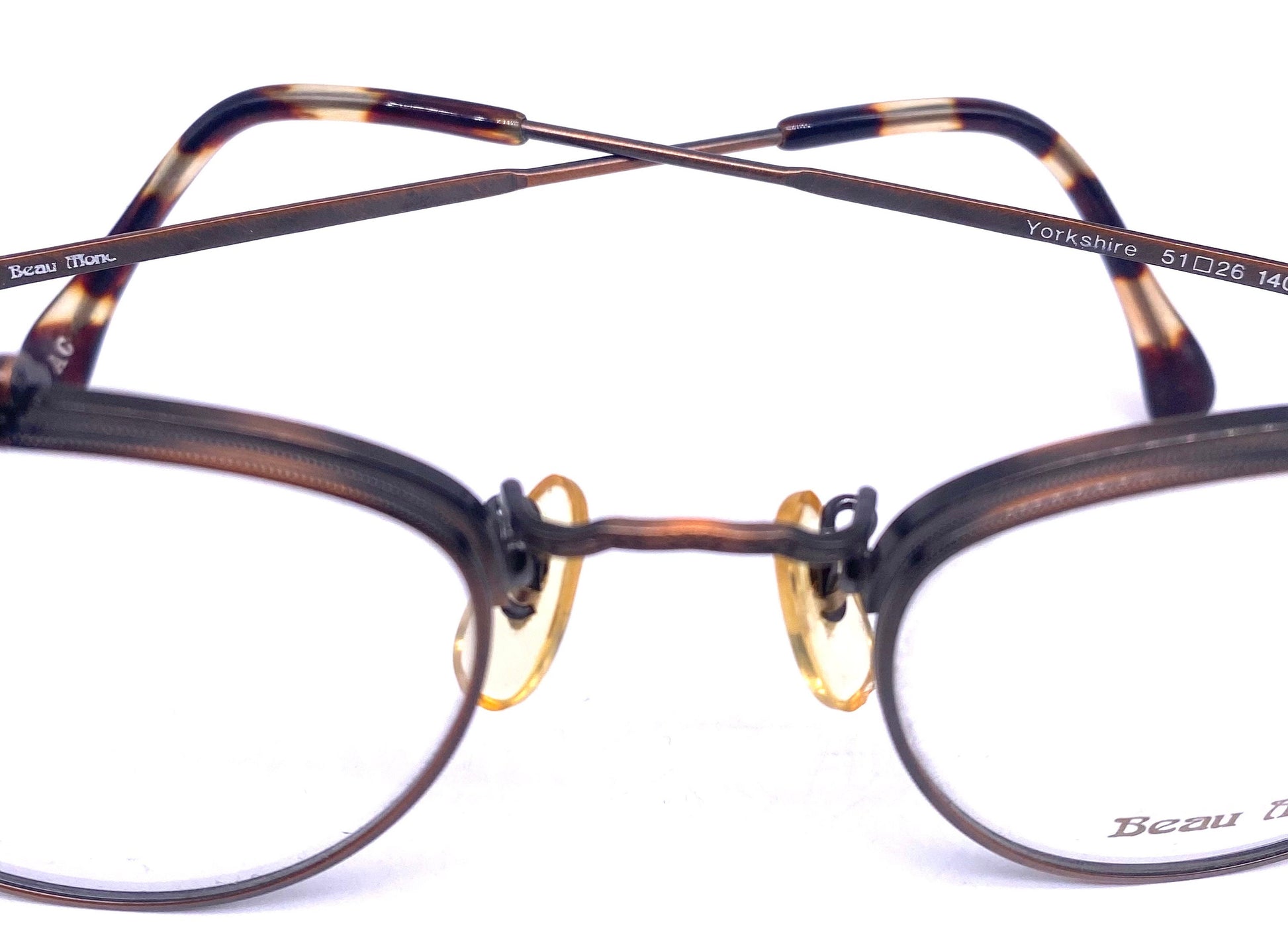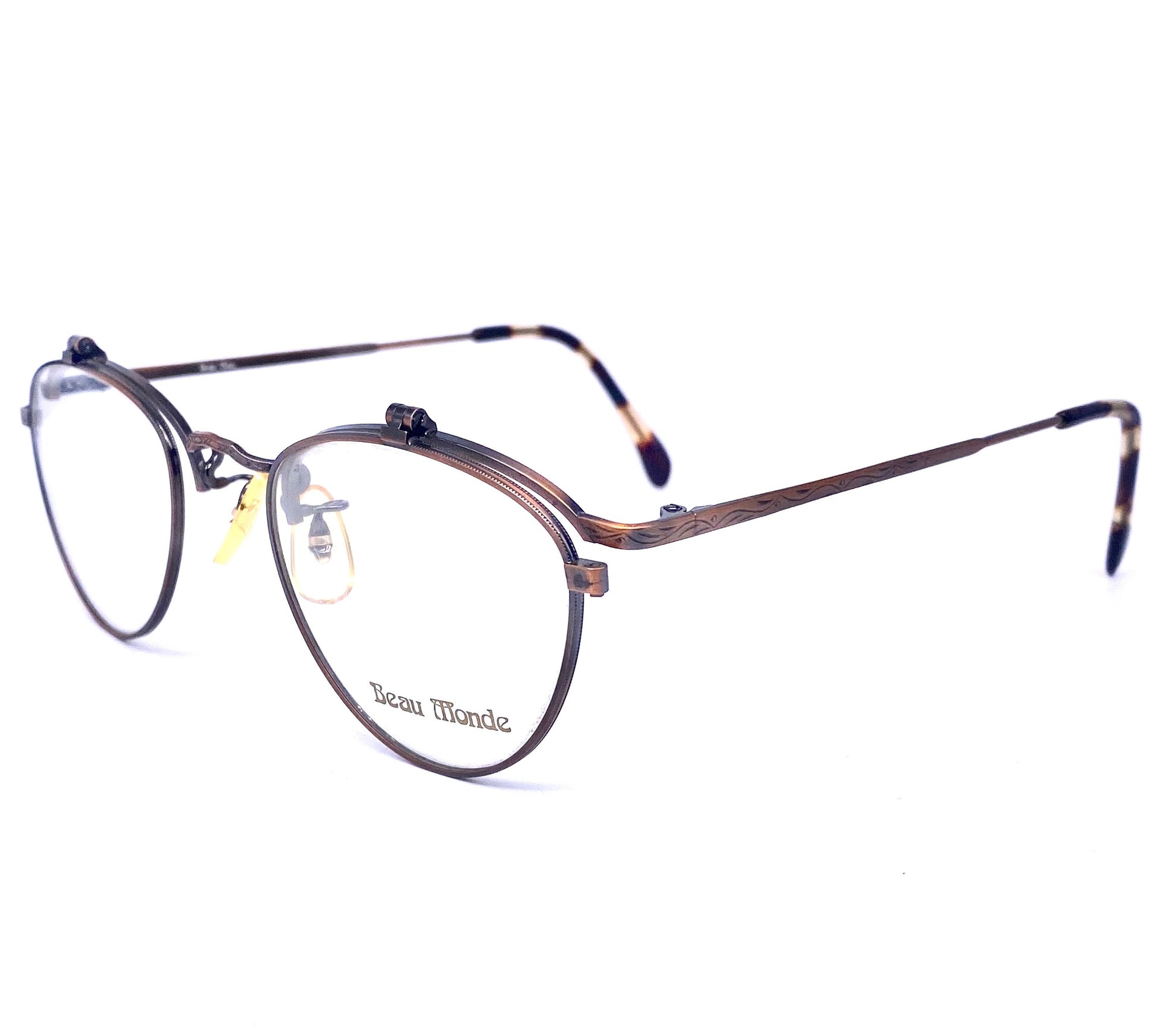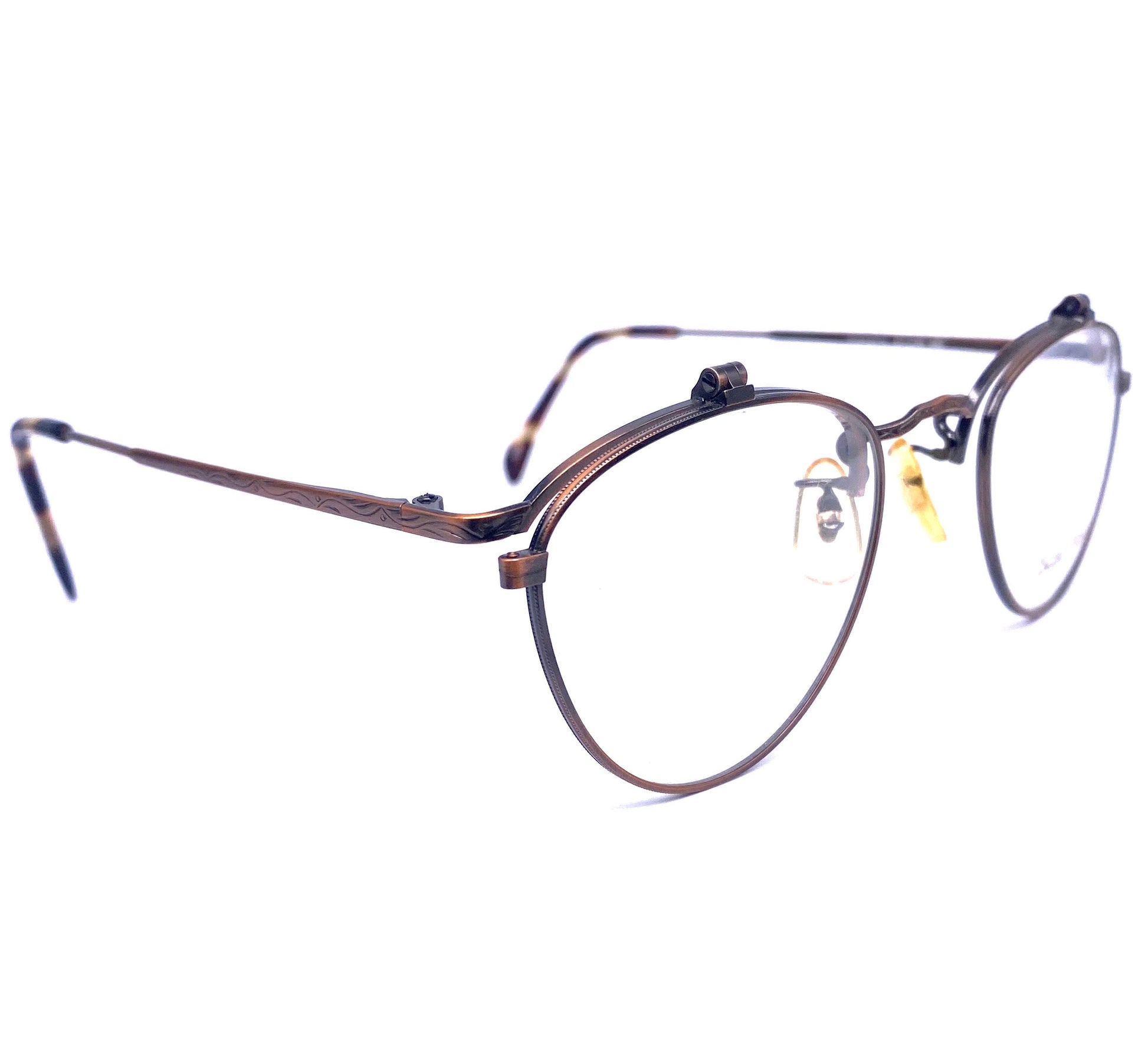 Beau Monde Yorkshire round antiqued copper flip-up eyeglasses frames, super hip piece made in Japan 80s NOS