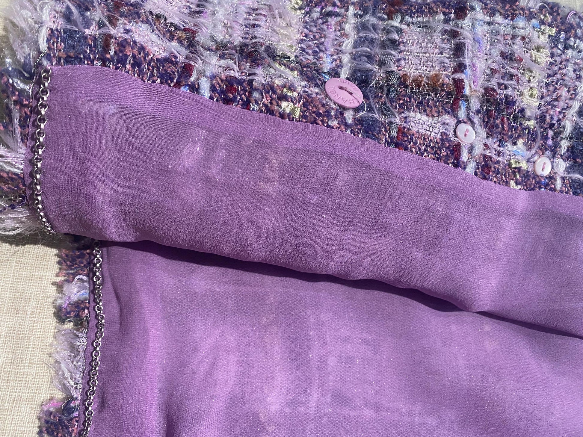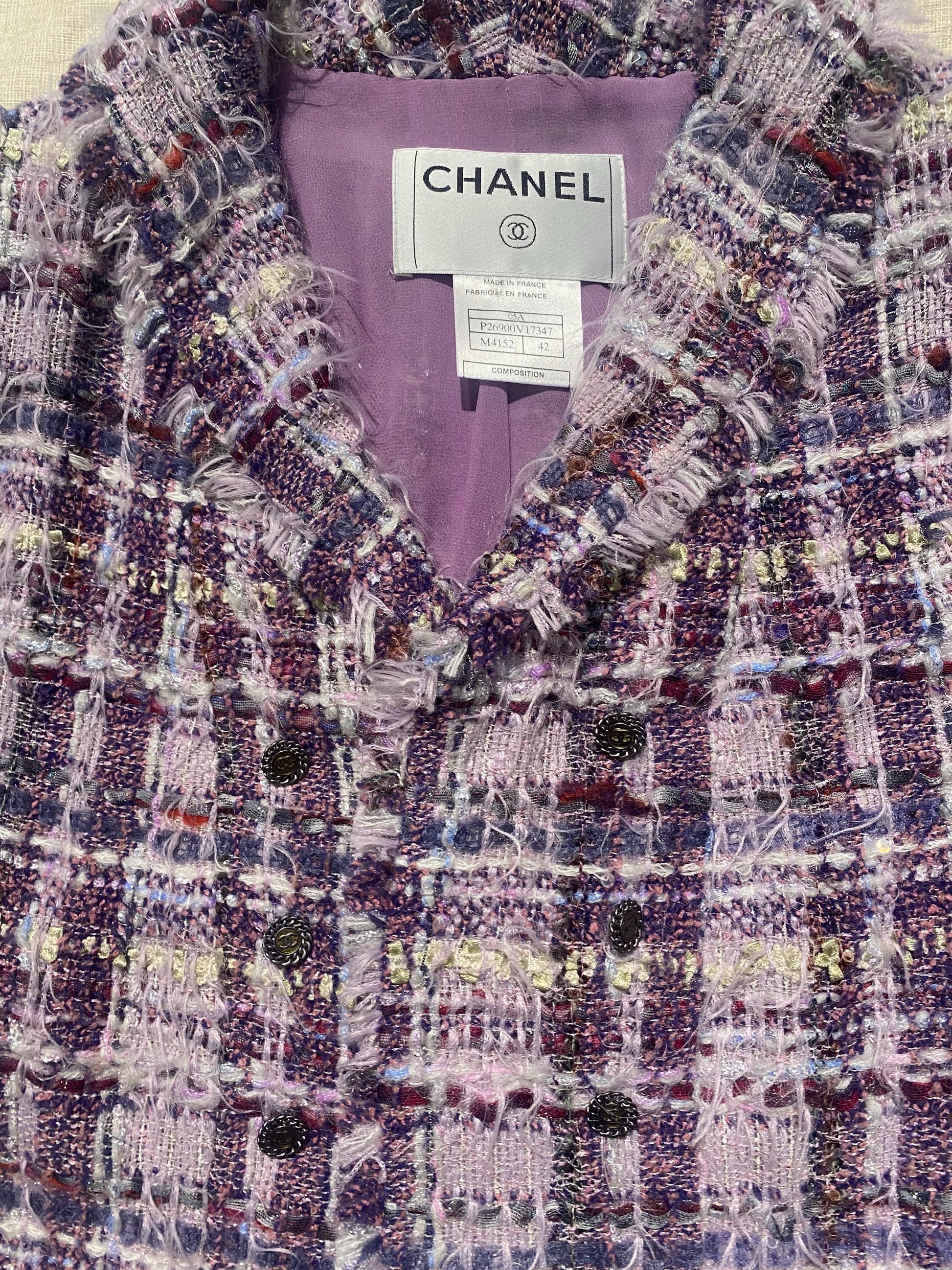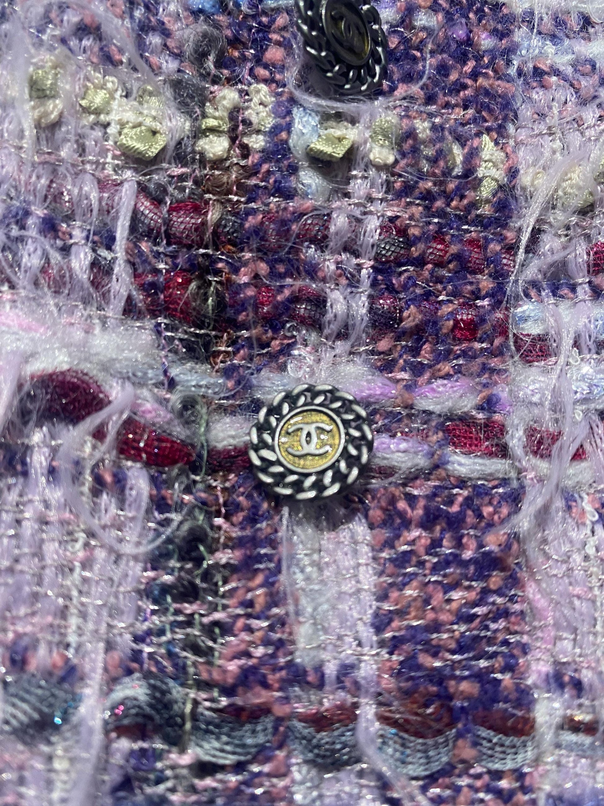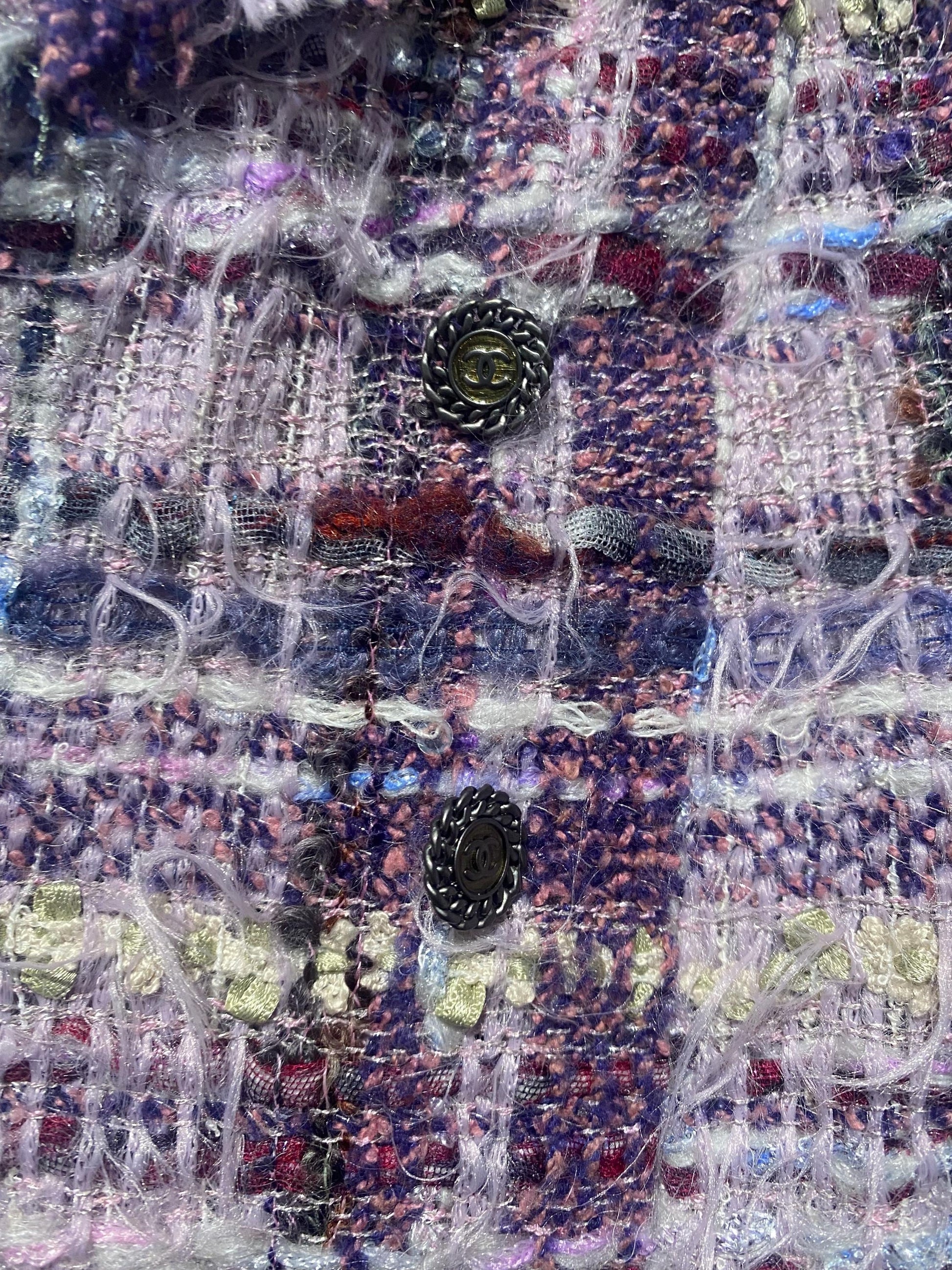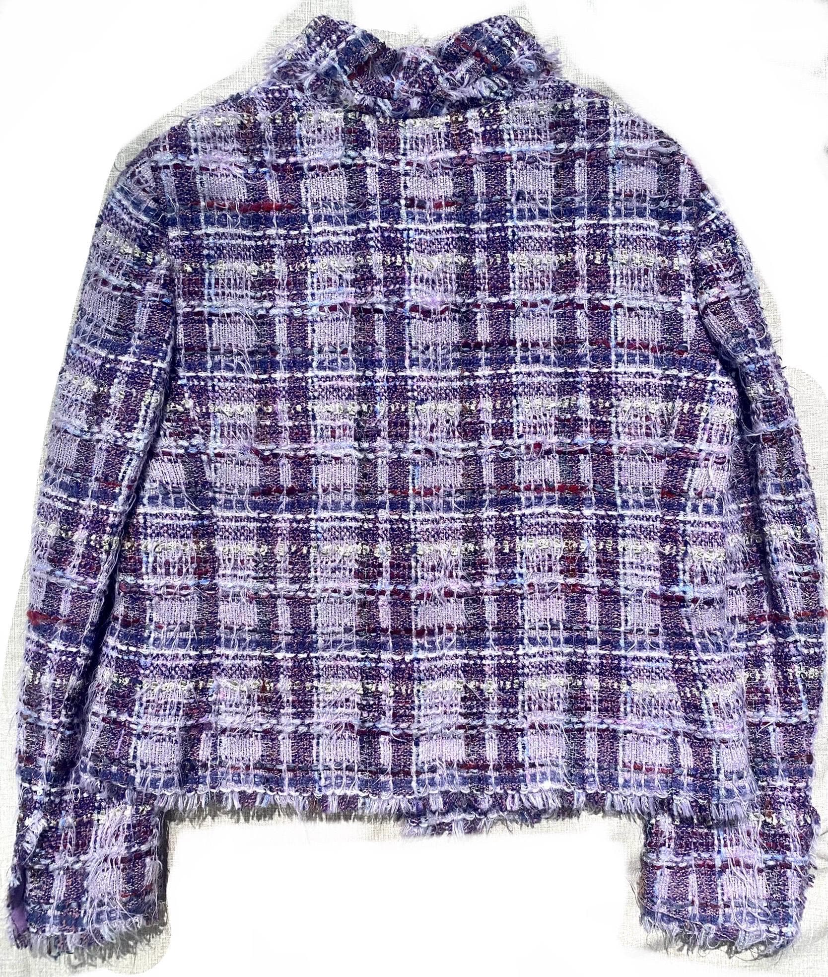 Chanel / Karl Lagerfeld era luxury soft Lesage tweed blazer in lilac/ purple tones, made with the finest Mohair wool with lilac silk lining.