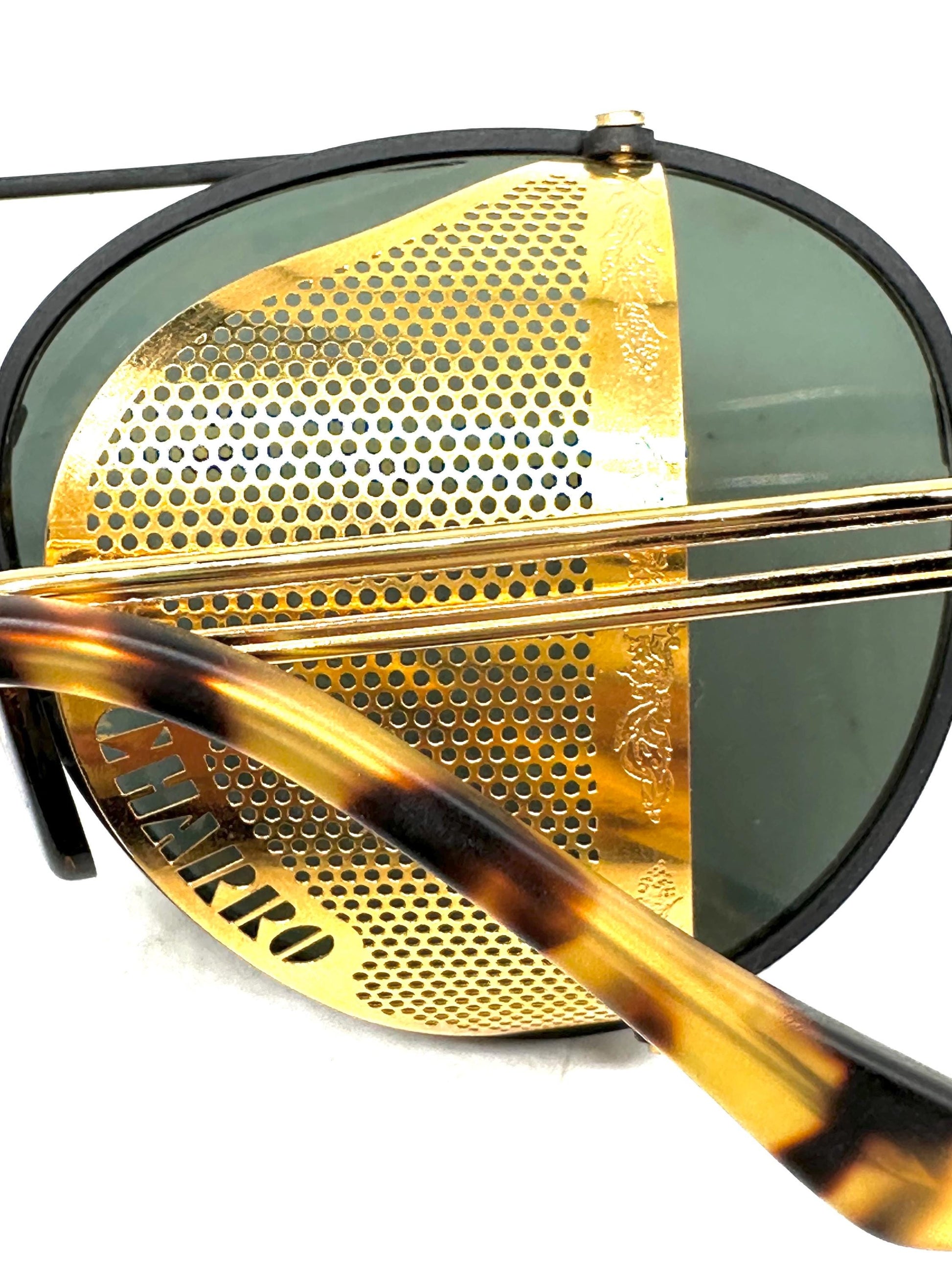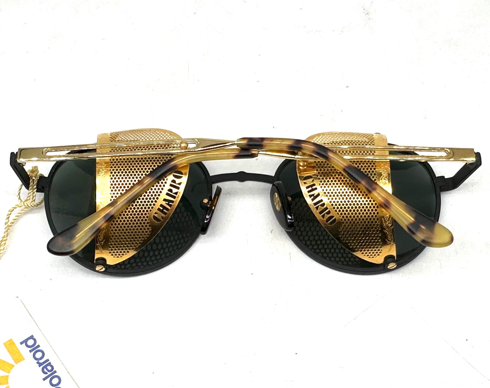 Charro rare round black-gold side shields sunglasses hand made in Italy, 80s NoS