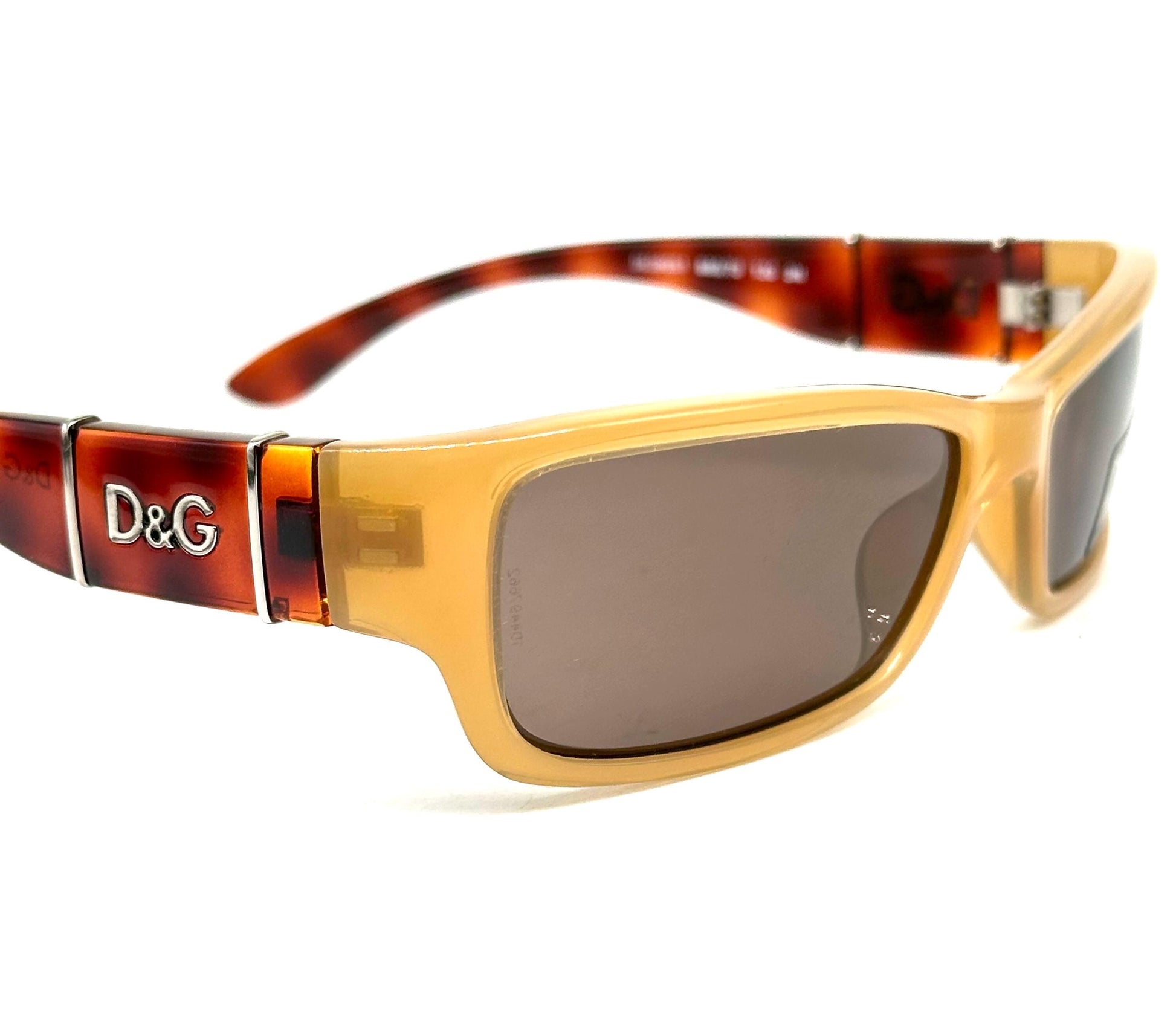 D&G / Dolce & Gabbana mid 90s unisex sunglasses with a cool wrap squared shape, coming in two beautiful colorways: a beige with tortoise temples and a dark burgundy with back temples, both with silver metal details and the D&G logo inlaid into the temples.