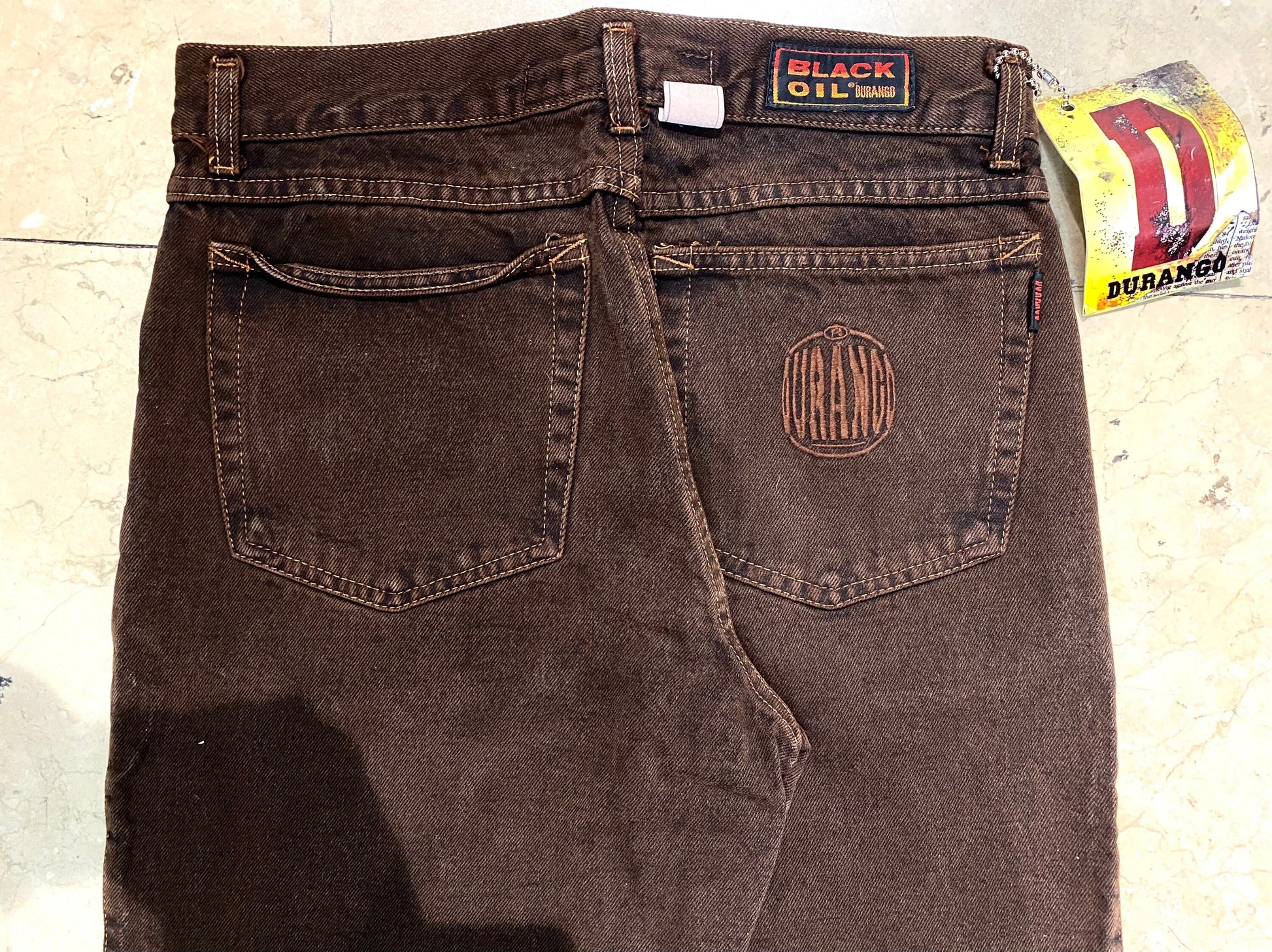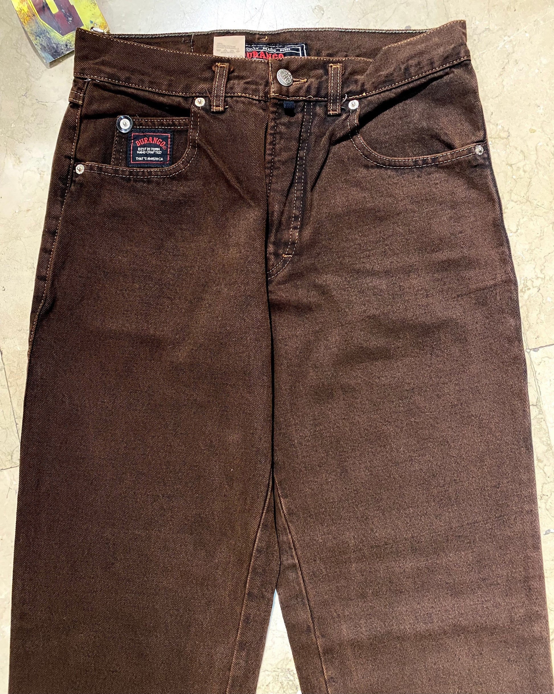 Durango brown straight leg jeans made in Italy in the 90s, brand new and unworn from deadstock in mint condition.