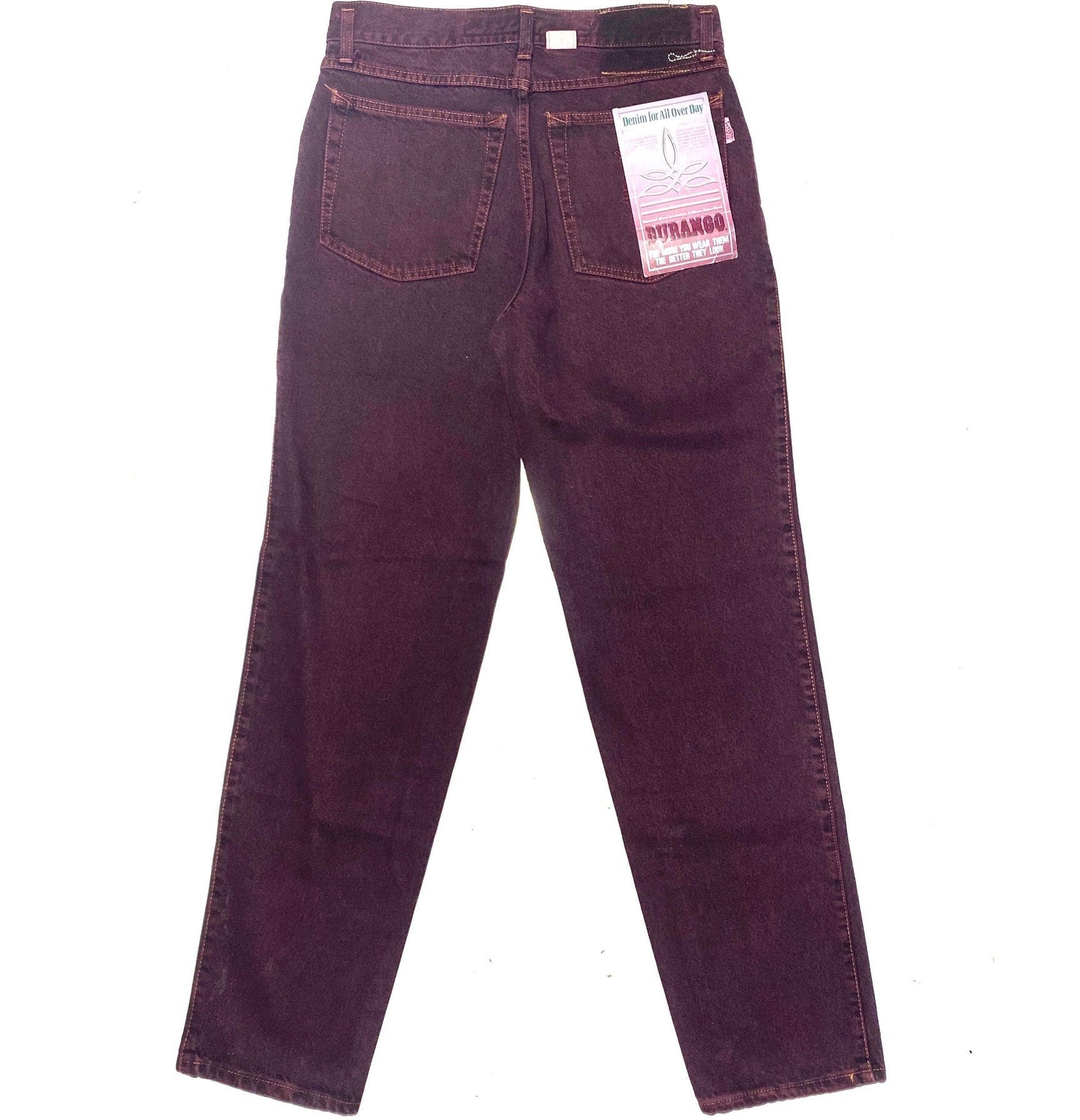 Durango burgundy straight leg jeans made in Italy in the 90s, brand new and unworn from deadstock in mint condition.