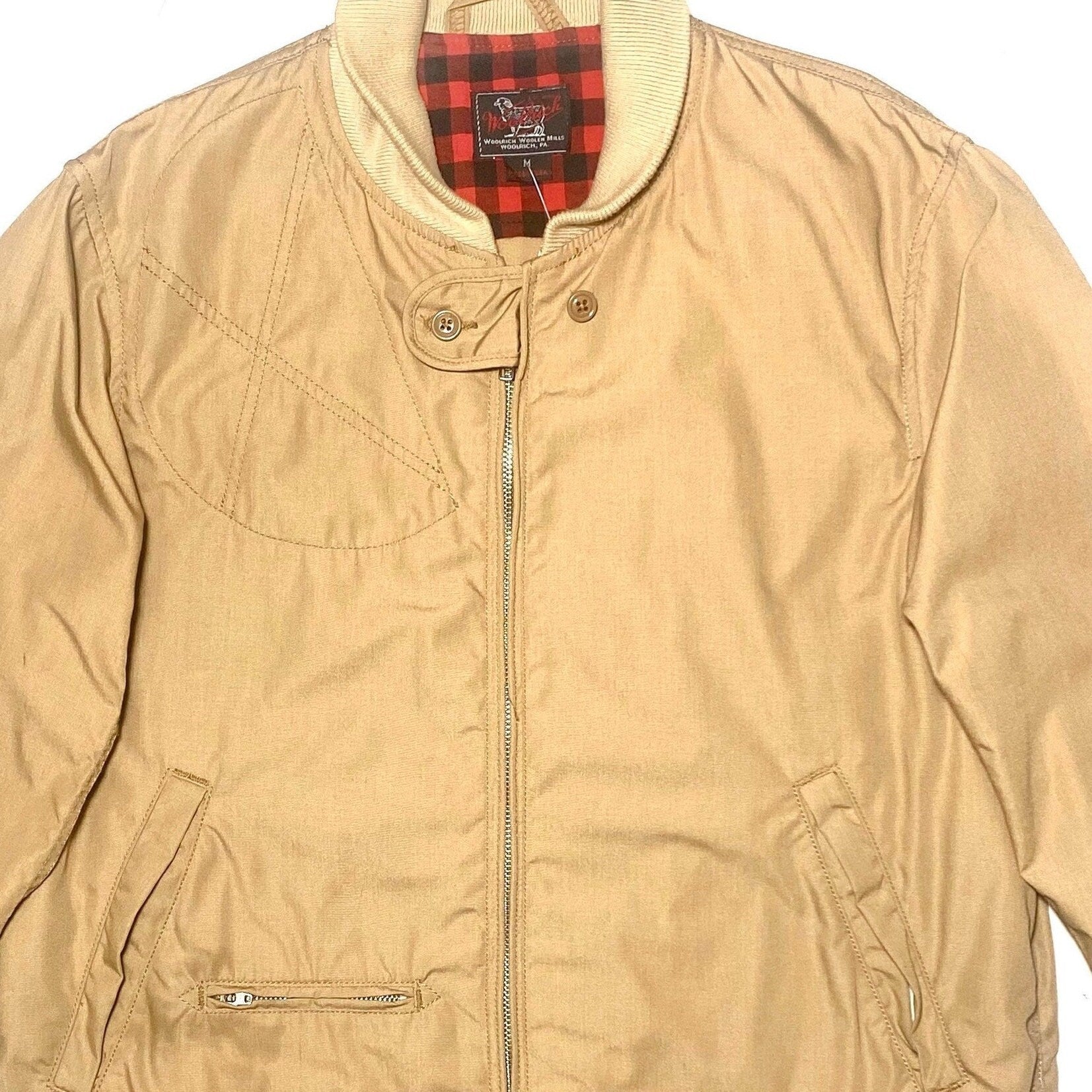 Giacca Harrington Woolrich in cotone beige taglia M, ottime condizioni, perfetta per gli Stati Uniti degli anni '90
