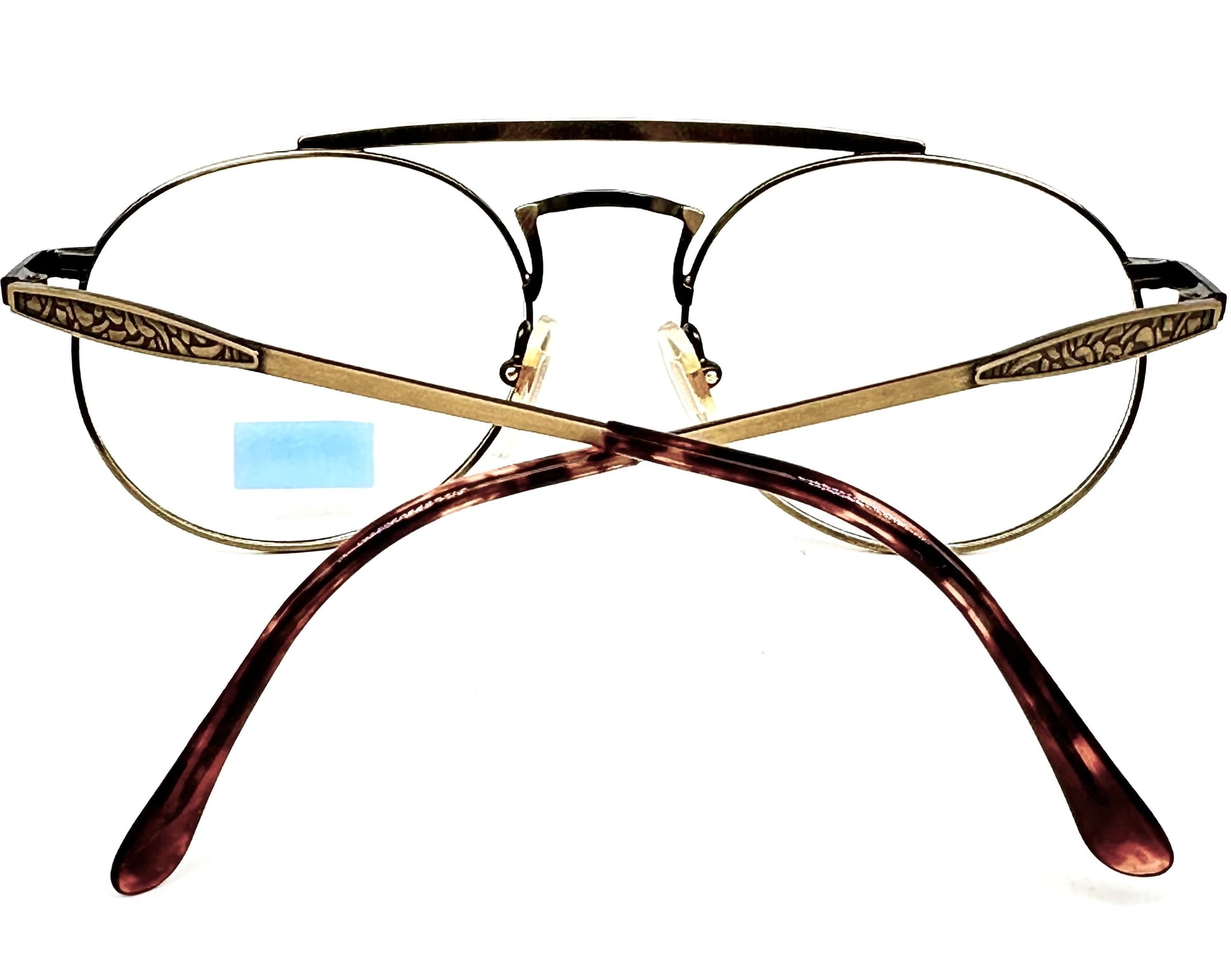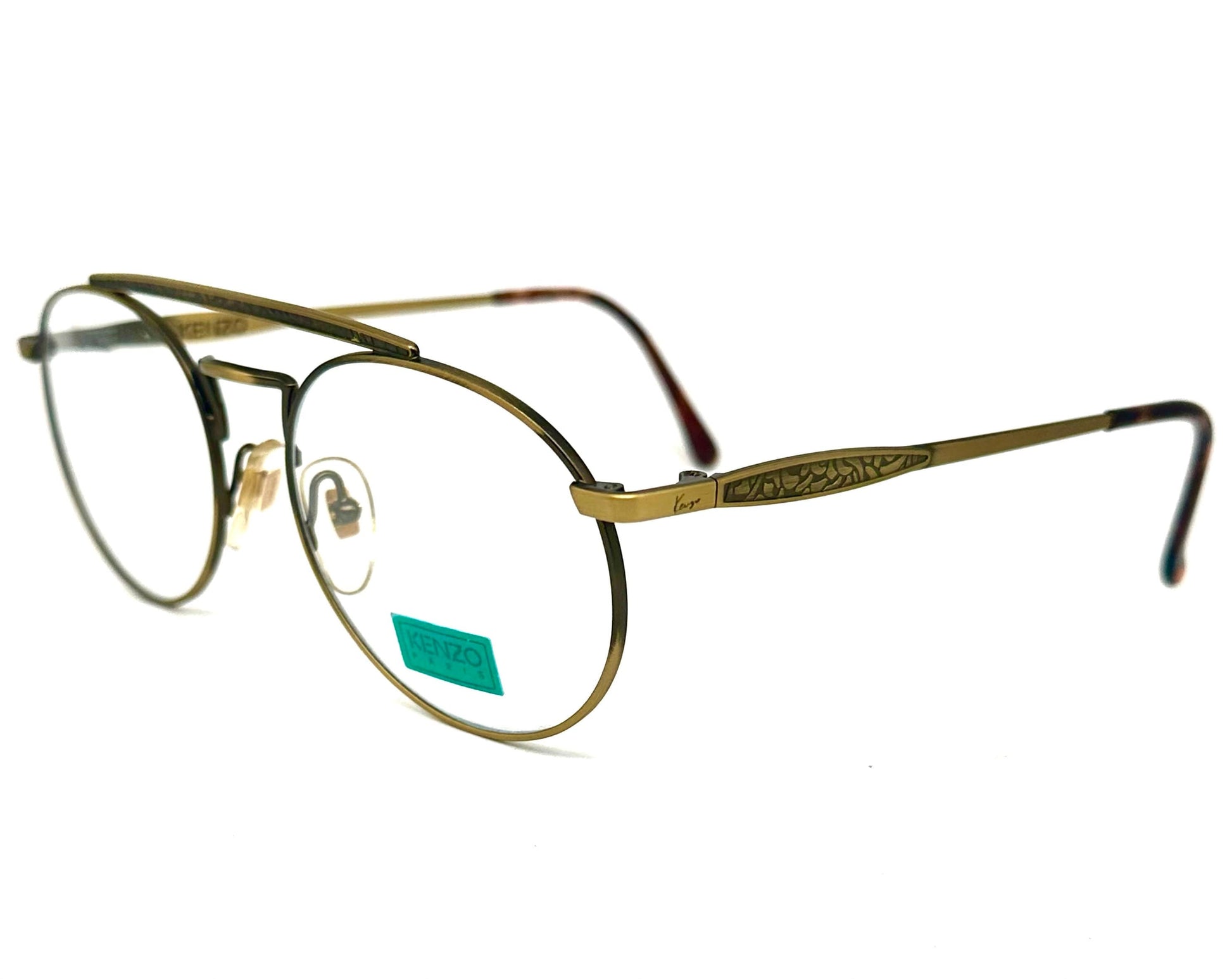 Kenzo 029 round dbl bridge aviator glasses frames w- carved deco details, NOS 80s France