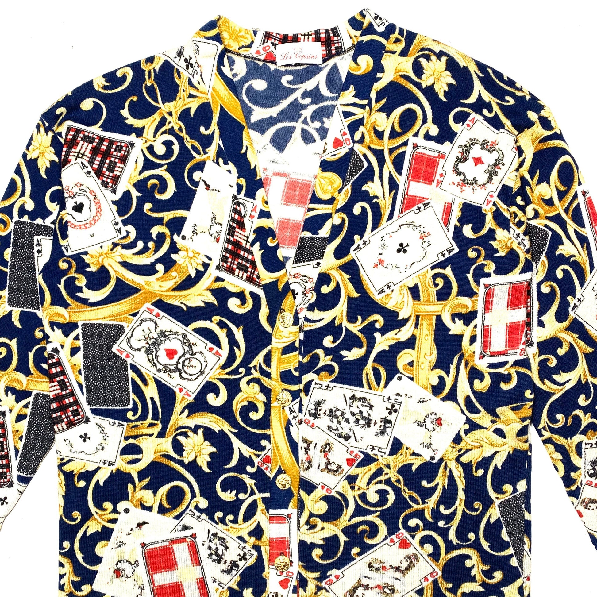 Les Copains stunning baroque cardigan with card playing themed print allover, in mint condition sz M/L ladies