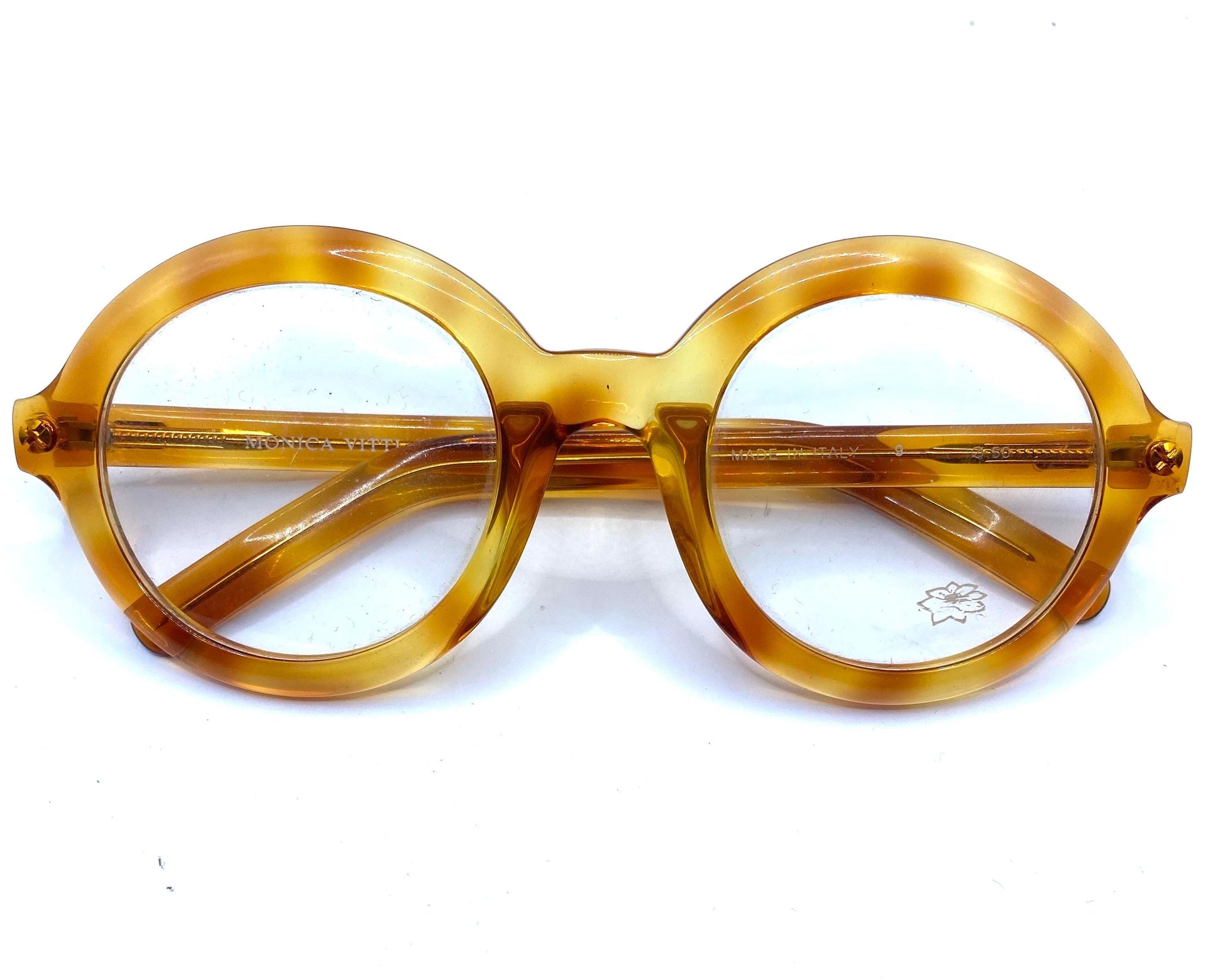 M Vitti cool round oversized light tortoise eyeglasses hand made in Italy, 80s NOS
