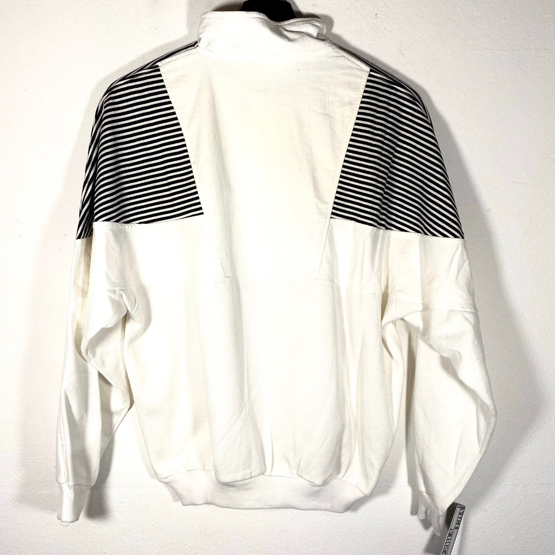 Striped Cotton sweatshirt with zip up collar, yellow, white or purple, cool pattern, NWT 80s.
