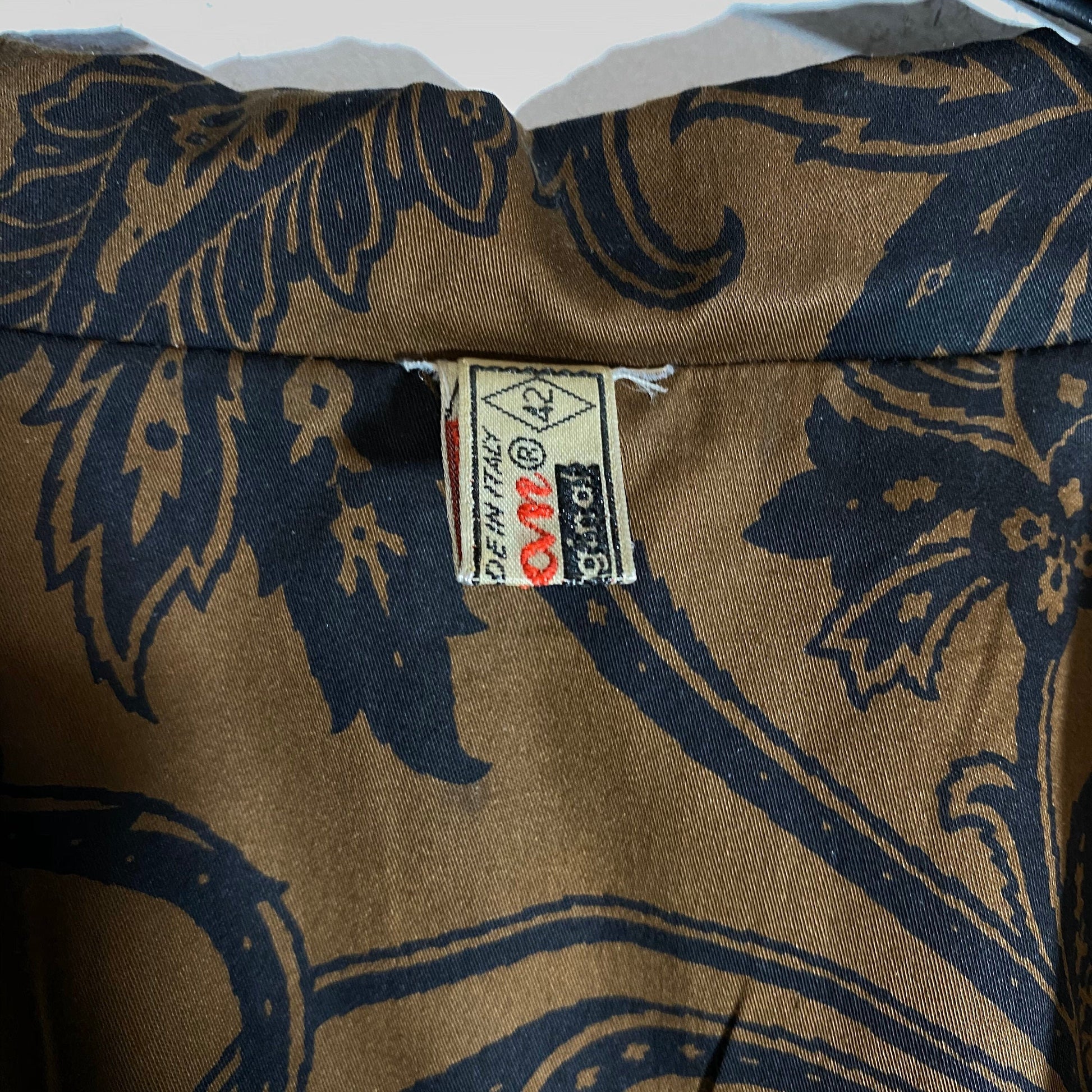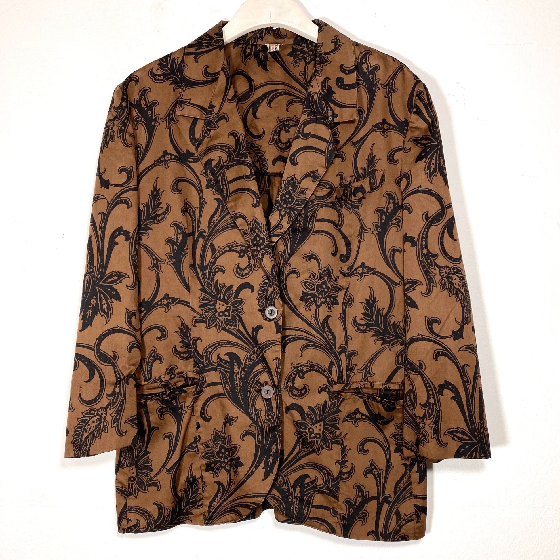 Swan brown light cotton blazer with black baroque print allover, NOS 70s